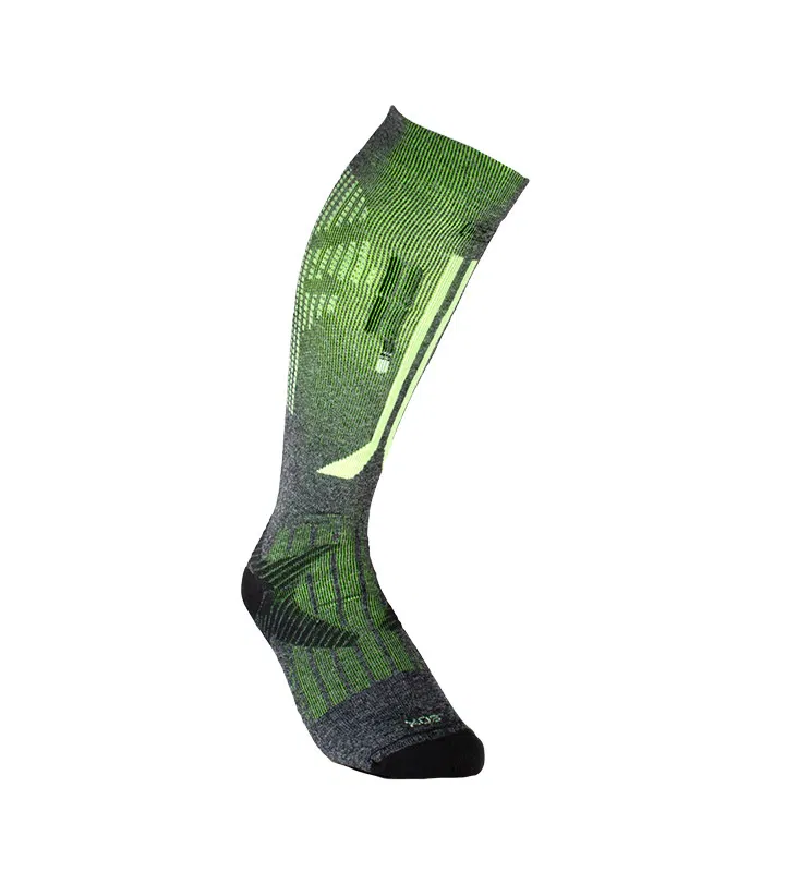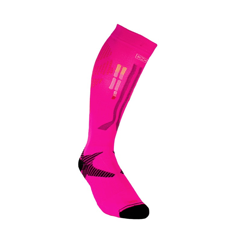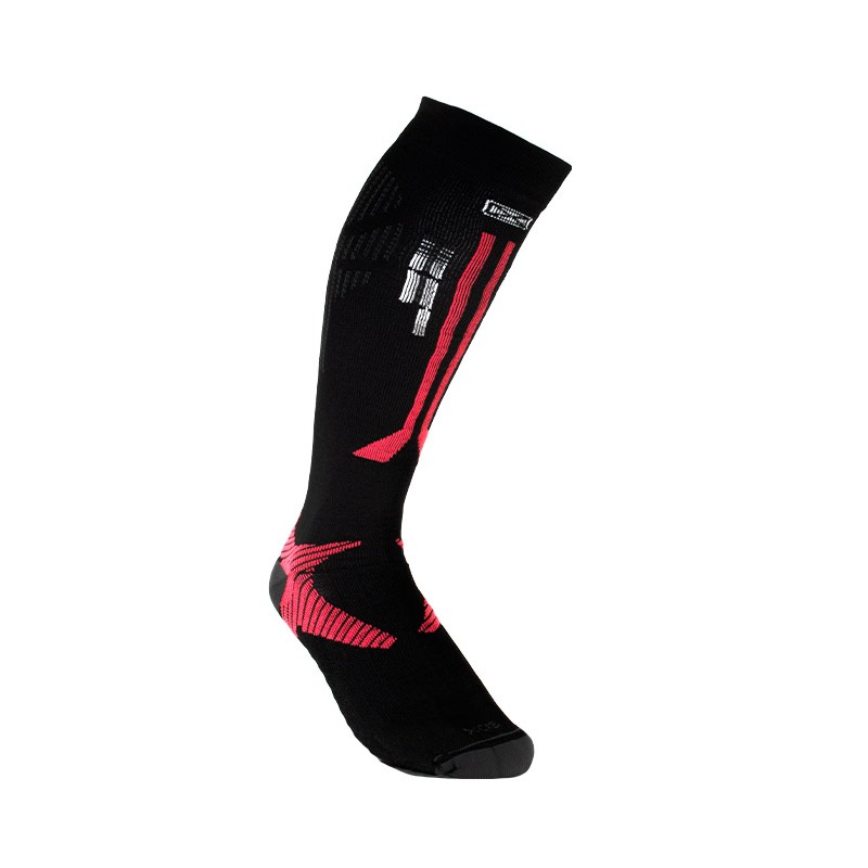 Medias de compresión graduada pensadas para el deportista. Desarrolladas para contribuir a la re-circulación del sistema sanguíneo y a la contención de los músculos. Colaboran en la prevención de la fascitis plantar por la compresión transmetatarsal. El agregado de puntos de contacto permite la relajación de las tensiones propias del pie. Con protector del tendón de Aquiles que reduce la incidencia de los puntos de presión y el riesgo de las lesiones por roce y moretones. Costura de puntera extra plana, puño doble, talón y puntera reforzados. Secado rápido gracias a su composición.