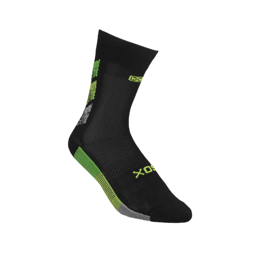 Puño doble elastizado, tejido liso, banda elástica en el pie para mejor sujeción, zona de ventilación en caña y pie para mantenerlo seco. Costura de puntera extra plana, talón y puntera reforzados. Ajuste y calce perfectos gracias al agregado de spandex. Secado rápido gracias a su composición.