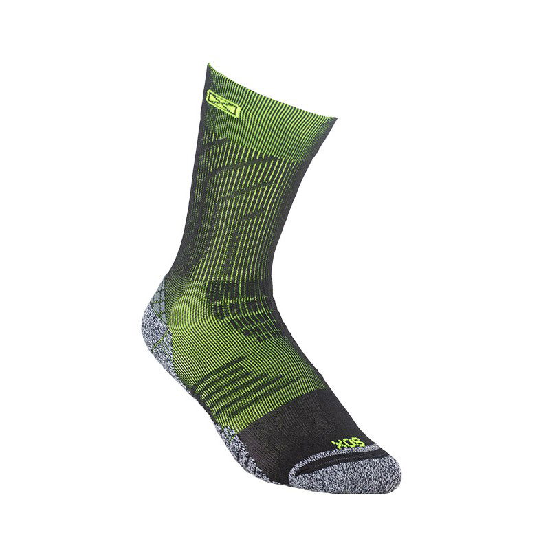 Medias de compresión pensadas para el deportista. Desarrolladas para contribuir a la re-circulación del sistema sanguíneo y a la contención de los músculos. Colaboran en la prevención de la fascitis plantar por la compresión transmetatarsal. Puño doble elastizado, caña y pie anatómicos, puntos de apoyo sectorizados con mayor densidad para absorber impactos. Talón y puntera reforzados, costura de puntera extra plana. Secado rápido gracias a su composición.